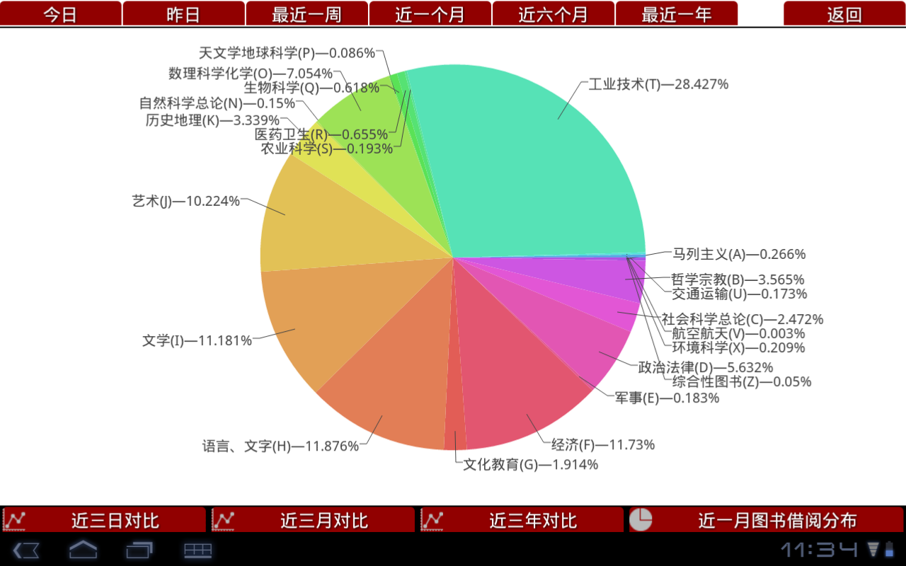 占比統計重點(diǎn)展現不同資源庫之間訪(fǎng)問(wèn)量的總比例,以餅圖為主要表現形勢,目前有分類(lèi)占比圖。
